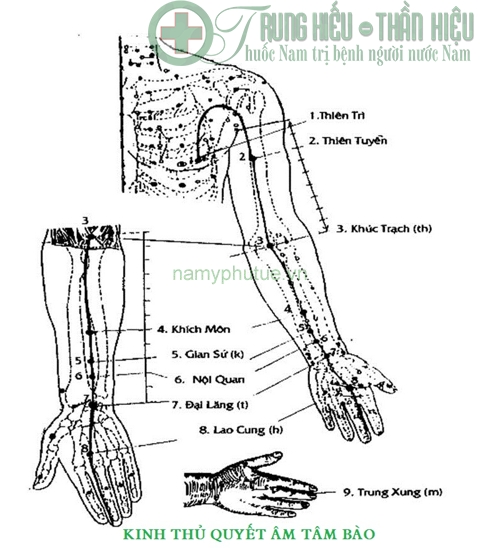 Dưới đây là công năng, tác dụng, phương pháp châm, cứu, cách xác định vị trí huyệt, hình ảnh các huyệt trên kinh Thủ quyết âm tâm bào: